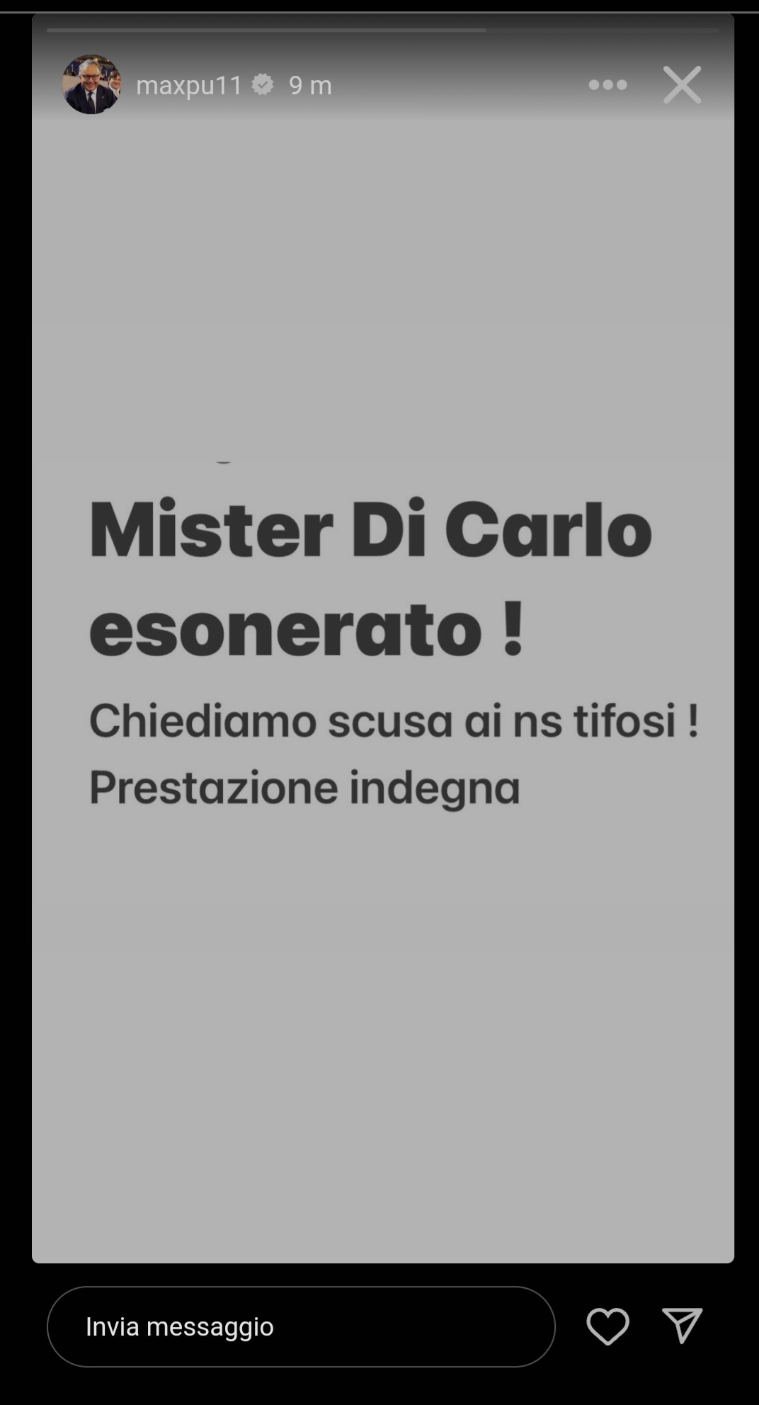 Dopo il ko subito in casa della Lucchese, decisione clamorosa di Massimo Pulcinelli, presidente dell'Ascoli: il numero uno bianconero dal suo profilo Instagram ha infatti rilanciato la notizia dell'esonero di mister Domenico Di Carlo. Pulcinelli ha scritto: "Mister Di Carlo esonerato! Chiediamo scusa ai nostri tifosi! Prestazione indegna".
