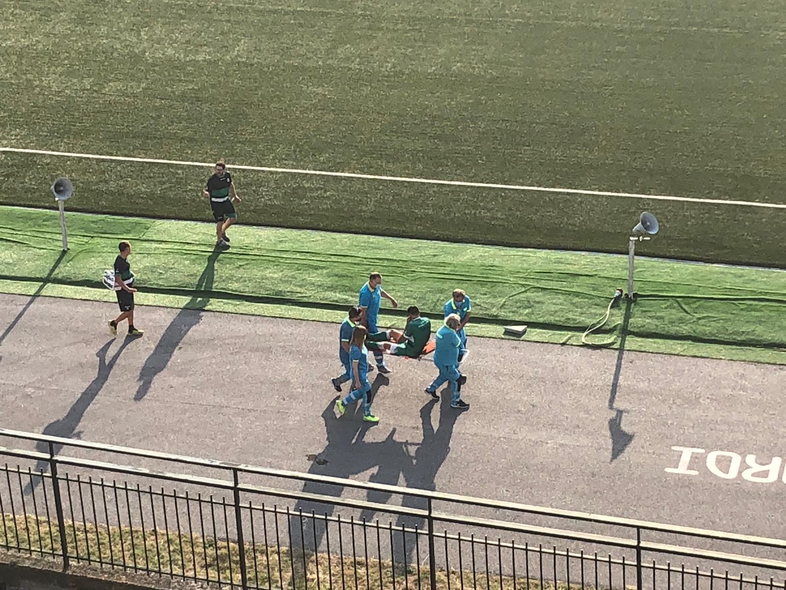 Brividi in casa Avellino: nel corso del test con la Cavese che si sta disputando in questi minuti al 'Partenio Lombardi' si è infortunato il difensore Giuliano Laezza. Il fattaccio è accaduto al 18' del primo tempo: il giocatore degli irpini ha patito un movimento innaturale del ginocchio destro in seguito ad un contrasto di gioco con Di Bari dei metelliani. Nella foto il momento in cui Laezza è dovuto uscire dal campo in barella, in quanto faticava a camminare. Mani sul volto per lui e mister Braglia visibilmente preoccupato per quella che sarà la diagnosi finale.