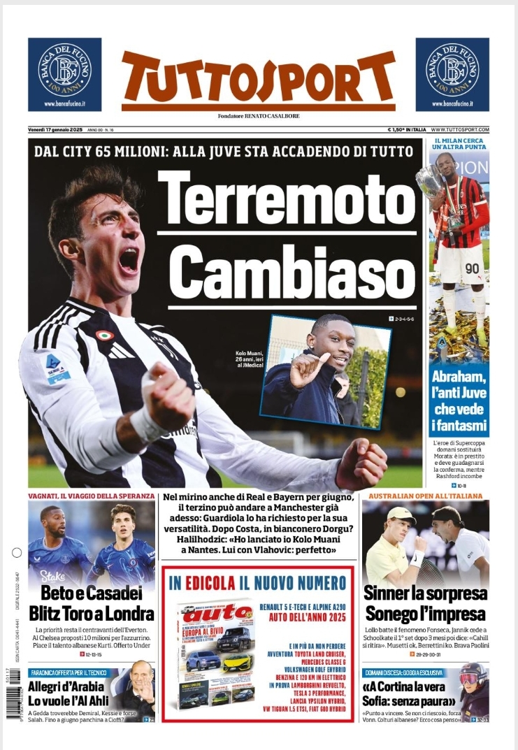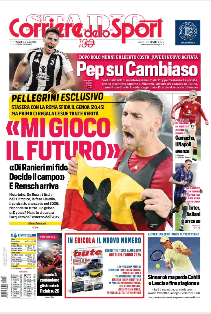 Ecco le prime pagine de La Gazzetta dello Sport, Tuttosport e Corriere dello Sport, i tre maggiori quotidiani sportivi di oggi, venerdì 17 gennaio 2025.