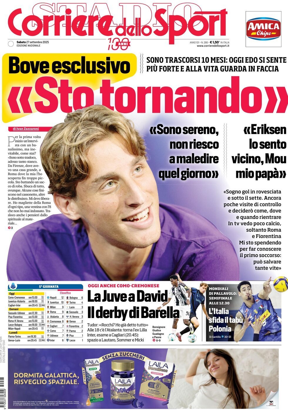 Ecco le prime pagine de La Gazzetta dello Sport, Tuttosport e Corriere dello Sport, i tre maggiori quotidiani sportivi di oggi, sabato 27 settembre 2025.