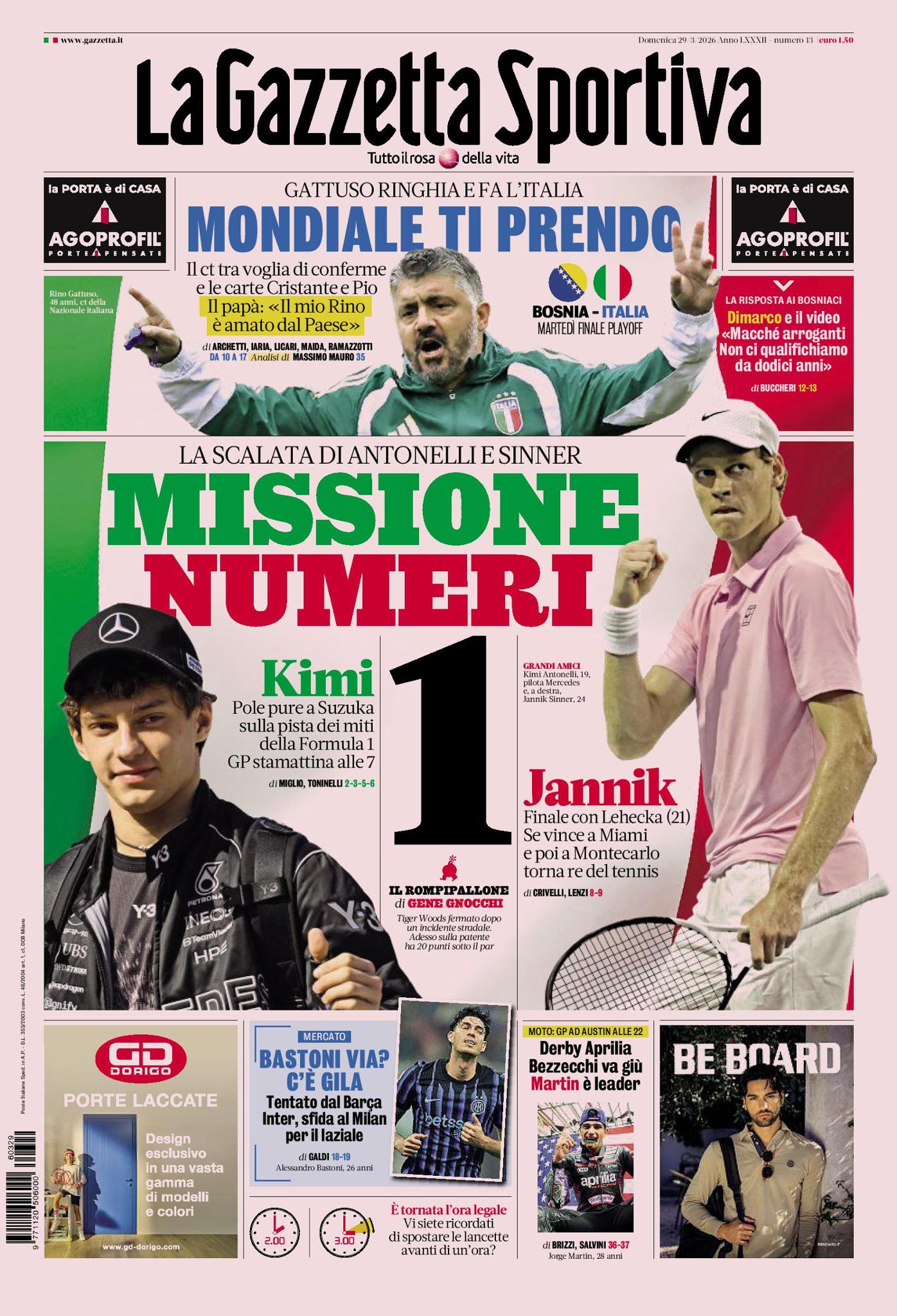 Ecco le prime pagine de La Gazzetta dello Sport, Tuttosport e Corriere dello Sport, i tre maggiori quotidiani sportivi di oggi, venerdì 27 marzo 2026.